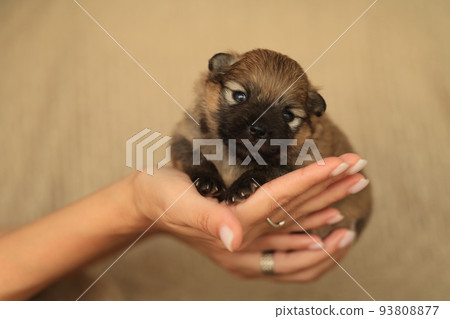 *Small newborn puppy in female hands. A - Stock Photo [93808877 *